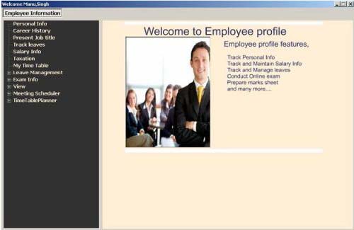 →Employee can view his Personal info, Career history, Present job title, Salary info, time table.